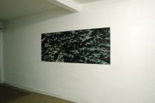 Joy Episalla | | | | Studio 1.1 is pleased to present �FOR THE BIRDS�a solo exhibition by the New York based artist Joy Episalla.18th December - 25th January 2004 | | | | Episalla�s work operates at the place where photography and sculpture intersect. She utilises diverse media: photography, digitally manipulated images, sculpture and video. Her past work has concentrated on images of everyday objects which bear witness to our presence - pillows without pillowcases to cover the markings of stain and sweat; curtains moving slightly in the breeze; close-ups of upholstery on the back of the sofa; a well worn carpet, shot to reveal the traces of its use. | | | upholstery on the back of the sofa; a well worn carpet, shot to reveal the traces of its use.In this new body of work, Episalla has extended her focus to investigate one particular site, the garden behind her flat. The core of this exhibition is the video entitled � For the Birds�. This video, filling the back wall of the gallery, opens as a seemingly simple real-time shot of an ivy-covered brick wall, and gradually becomes in the artist�s words, � a virtual live-action flick set in a massive bird condominium complex. It functions like a living, breathing monochrome�. Almost imperceptibly, ripples disturb the surface of the ivy and the sound of chirping prefigures the moment when birds begin to dart in and out from under its cover.� Once an art student asked Corot to tell him how to paint leaves like that, and he told him � Always paint leaves so a bird could fly through�. See those leaves? A bird could fly through�.Tom Wolfe, �The Shockkkkkk of Recognition.� | | Three pieces as well as re/creating a living environment, form a subtle enquiry into the modes of its representation. The video draws the viewer through it elaborately articulated proscenium to move within the space the leaves and darting birds define. Another mass of ivy leaves printed on industrial billboard vinyl, pressed flat against a side wall, emphasises the reality of the wall itself; while more iconically, floating prod of the wall opposite , an image of a dark hole within those same leaves suggests yet inevitably denies that illusion of penetration. | | wall itself; while more iconically, floating prod of the wall opposite , an image of a dark hole within those same leaves suggests yet inevitably denies that illusion of penetration.Joy Episalla lives and works in New York. She is currently represented in New York by Debs & Co Gallery. Her work has been widely exhibited in the US and internationally, with recent solo shows in Neue Galerie / Interaktion Kunst, Hanover; Mercer Union, Toronto; Phoenix Art Museum, Arizona; Clifford Smith Gallery Boston and Debs & Co, New York. | | | | |