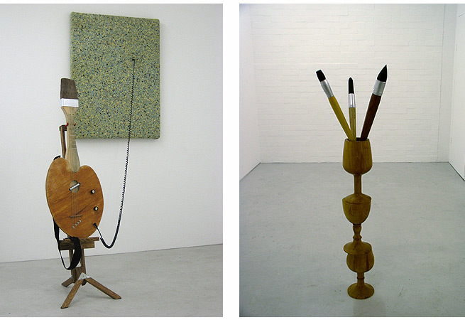 Left: Fruits of the Palette (2007) Wood, electric guitar parts, foam, amplifier