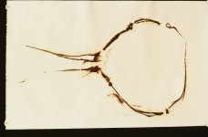 | The amphora becomes a symbol for the human that is not longer there. These prints remind me of other residue from events in the past- the blast shadows created by the thermic rays from the atomic bomb at Hiroshima, trick ‘spirit photography’ from the early 1900's, and the mysterious prints on the Shroud of Turin. More recent and for me, more resonant, I think of all the singed pieces of paper from the World Trade Center attack that drifted over my area of Brooklyn- little fragments acting as constant reminders of great loss. |