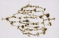 | The casual viewer may not instantly spot that these prints are made from glass, but no other material would be able to create these high-temperature, organic burns. They have a richness, translucency and liquidity that is an echo of the original glass form. The resulting burntimpressions have a high level of detail as the burns pass through layers of paper and also create embossed areas. They range in color from areas of rich, dense blacks to smoky sepias and watery yellows. The burns are full of light- they have a mysterious photographic quality; in some areas they look as if they are backlit. – – This recent body of work is based in ruins that I studied in 2002 in Italy. By using piles and stacks of traditional Roman glass forms, I once again connect these prints to their glass craft origins. The amphora-style forms I am using reference unearthed antiquities. That feeling of ancient, dirt-covered pieces speaks not only to the ideas of preciousness of the original object, but also extends the meaning of the print when it is completed: the final prints are brown, crusty, and damaged, like an excavated shard. These burn prints are poignant, because they exist simultaneously as aesthetic objects in their own right, and yet also speak of the object that was lost. | |||||||||