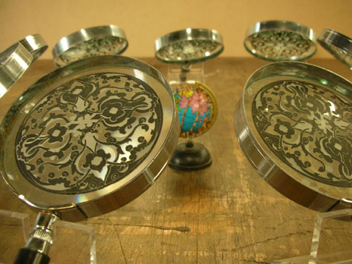 mirrors, sand blasted ornaments