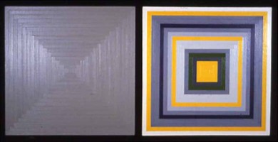 | The paintings I make are both generic and branded. The elements of composition (i.e. stripes, concentric squares or circles) in the works are not unlike paintings by numerous other artists. The brushstrokes are deadpan marks that reveal nothing. They are human, but anyone with a reasonably stable hand could make them. Yet the colors of these paintings have specific meaning. The palette is determined by assigning the letters of my name with colors in a random manner. The paintings literally spell my name in color. These works end up being both exclamations and denials of the self. They are metaphors for our desire to define ourselves as individuals. But they also question the notion of value placed upon the original or unique in modernist history. | |||||||||