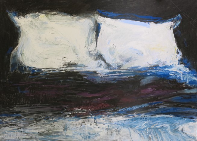 These drawings and paintings of details of pillows and beds  form part of an ongoing series from Atget photographs.