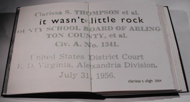 It Wasn't Little Rock is a narrative that explores the life of Mozelle, a passive American Southern black woman, who feeds her children one by one into the country’s 1950s school racial integration “experiment” and their later reflections on that situation. The book was created to commemorate the 50th anniversary of the Supreme Court's Brown vs. Board of Education decision which ruled that “separate but equal” schools were unconstitutional. The title, It Wasn't Little Rock, comes from the response given by black students, when describing their experiences at the newly integrated schools.