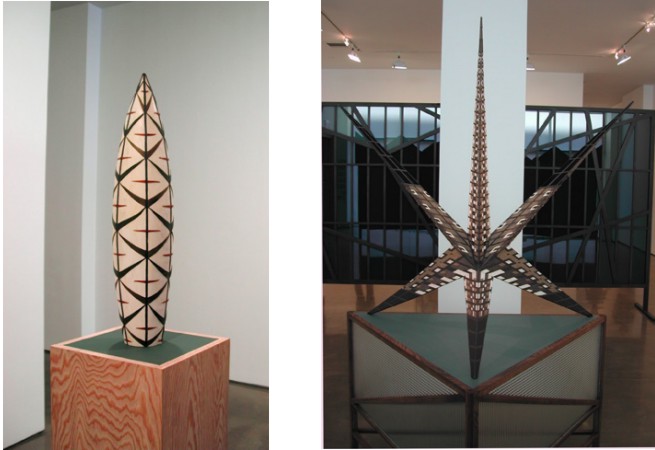 | 303 Gallery is proud to present our first exhibition of work by David Thorpe. Thorpe will show groups of sculptures, screens, drawings and intricate collages, made of grass, wood, leather and Formica, that simultaneously open up and close off the viewer from the world. In one of the central collages, a sky is constructed of inlayed Formica reminiscent of stained glass panels. The laminate is solid and impenetrable, the collage has no distance, luminosity or horizon line. Thorpe's idea goes against traditional Western landscape painting which employs a sense of depth to suggest a limitless view – that the world is infinite. Here, the reverse happens. | ||||
