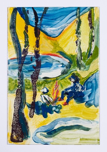 Beaucage’s Chill Bivouac Rhymes paintings and mix media exhibition invites you to follow a small group of teens at a rave concert. A young Bolshoi ballerina; Ekaterina becomes a rave bunny and escapes her Russian lover to venture in cutting shapes with a young surfer from Bora Bora.