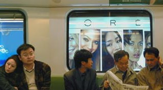 With the Underscape series, Edith Roux describes again the advertising landscape influence on dayly life. She realised this work inside Shanghaï underground (2003).