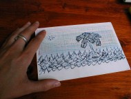 In post-card (image1-2), 200-tourist postcards of Buenos Aires were transported to Maastricht, The Netherlands, to be re-printed: a silkscreen white layer slightly covering the photograph created a new surface to be reused. The addresses were 123 Argentineans, some still living in Buenos Aires, some of them gone, who decided to take part in the project.