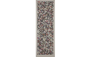 | #RichardSerra, Acrylic & Gesso on Canvas, 72×20 inches, 2015 This color portrait was created using 526 photos from Instagram tagged with #RichardSerra. The photos were combined and analyzed using software to compute the 10 most common colors in the photoset. The colors were distributed on the grid using a number system based on the cosine of 11 degrees. | ||||
