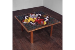 Since 2007, Jason Hughes has been working with shredded money as a means to explore ideas of labor, value, and self worth. These highly crafted and meticulous works not only illustrate his painstaking process, but they also highlight the disparity between skilled labor and industry in the United States. By carefully reconstructing dollar bills previously removed from circulation and shredded by the government, Hughes reconstitutes a new set of values on the otherwise worthless strands of money.
