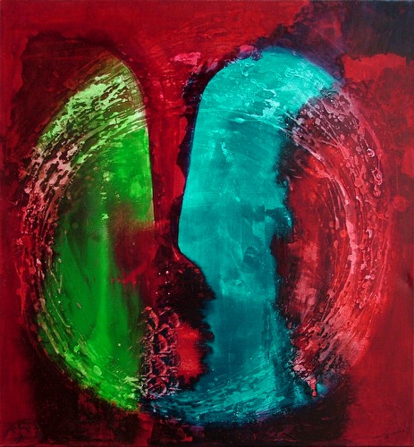 Julie Caves’ work involves colour either as the subject of the work or used as metaphor. She investigates colour relationships and finds colour useful to talk about other subjects. The paintings are either thick with colour built up in painterly layers or very smooth with light-filled veils of luminous colour.