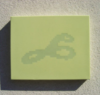 MORPHIUM, wood, enamel, five parts, 2001-02, dimensions variable, details Monitor I, enamel on canvas, 2003, 40 x 50 x 4 cm