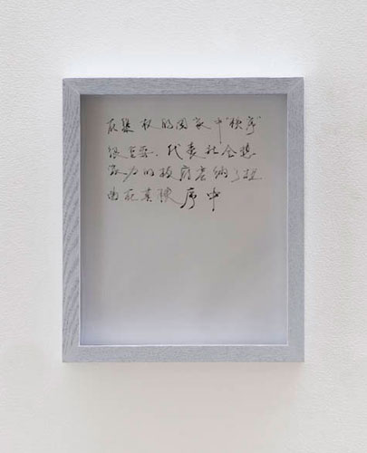 I Wrote Down Some of My Thoughts presents a recent series of works by artist Liu Ding, which reveals yet another important aspect of the multiplicities of his practice. The artist has commenced on this artistic adventure since the beginning of 2008, when he started to hand-write his strings of thoughts on black and white photographs that he had taken of a beautiful landscape early on. These thoughts recorded his contemplations on the medium of photography and the relationship between our visual memory/experience and the reality it’s based on. Rather than drawing any conclusion on this subject matter, the artist made bare his unprocessed process of thinking, remaining truthful to the occasional struggles the artist was having with his own thoughts, deliciously raw and thought-provoking.