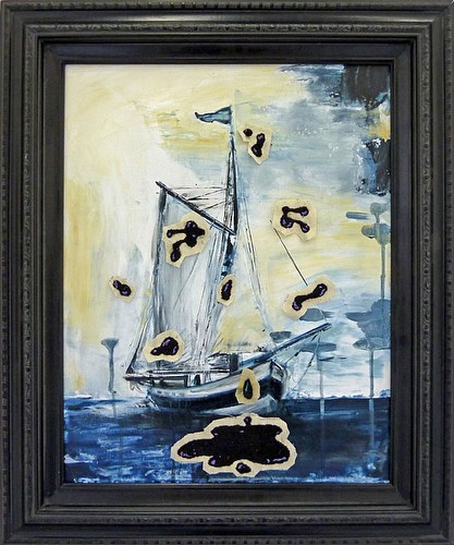 My work collides the domestic world of craft with the muscular images of Pop in signs: maps, banners, billboards, and roadside attractions. Like figures of Paul Bunyan, concrete dinosaurs, giant donuts, circus billboards, I want the work to share that sense of crazed exuberance, a bid for attention that contains a simple expectation of attracting attention. There’s a pre-technological innocence to those somewhat crudely constructed signs that is honest because the gag is so obvious that you’re in on it more