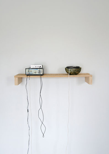 Sublimated watermelon, function generator, amplifier, speaker, cable, wood 23 x 92 x 26 cm