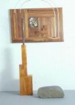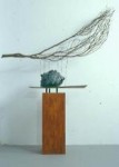 … Like traditional round sculptures, works of such a nature usually concentrate on appearance, changes in the ‘characteristics of every aspect’ and the transformation of 3-D light and shadow effects. As a result these sculptures were placed in the center of the show, enabling viewers to scrutinize all round so that all messages conveyed would be received for interpretation and evaluations of the work. In term of aesthetic styling one can easily recognize the ‘down to earth’ character inherent to these works because the elements of them show the closeness to worldly things. To viewers, segments of wooden furniture, stones, metal wires used in industry and man-made wooden blocks may be no more than common objects with a different touch. Through Tsai Ken’s hands however, and his innovation, they have metamorphosed into elegant forms. These works surely display the artist’s habit of cherishing things and objects. It also shows his attempt to integrate life with art. If his initial strategy is to integrate art with life, the key point seems not how he should combine these ordinary objects but how can he rectify the attitude of isolated pride which has for so long prevailed in art and bring to it a human touch?