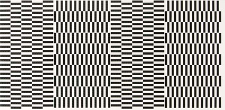 Als sie das Glas antippte, erzitterte darin die Spiegelung der Deckenleuchten ein wenig 2006, 35mm-Film und Mattlack auf Forex-Pan, 122 x 250 cm | |||