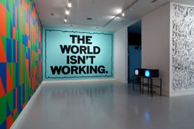 | MARK TITCHNER | CAFE GALLERY & DILSTON GROVE 2 Apr - 4 May 2014 In celebration of the 30th anniversary of the opening of Cafe Gallery and the 15th anniversary of the opening Dilston Grove, CGP London has, for the very first time, commissioned a single artist to present works across it’s two venues. Mark Titchner's practise spans a number of media including digital print, wall drawing, video, sculpture and installation. Preview: Tuesday, 1 April from 6:30 – 8:30pm 2 April – 4 May 2014 | Wednesday – Sun | 11am – 5pm. His practise explores systems of belief, both secular and spiritual, often focusing on the marginalized, discredited or forgotten ideologies and objects we place our faith in. Using the impersonal language of the public realm, ranging from the quasi-mysticism of corporate mission statements to the maxims of revolutionary socialism, his work exhorts us to believe in it. Motifs taken from advertising, religious iconography, club flyers, trade union banners, prog rock and political propaganda all vie for our attention. The common denominator of this quest for idealism is a quest for enlightenment; a desire for some form of transcendence; and yet, abstracted from its original context, the message appears drained of meaning. We know that we are being asked to respond but the purpose is unclear, leaving us only with the formal means of exhortation and our own desire for meaning. Titchner will present a new series of wall drawings specifically conceived for Cafe Gallery. On leaving Central St Martins School of Art in 1995, Titchner's earliest projects were focused on wall drawing and these were included in exhibitions at City Racing, the ICA and the Royal College of Art. Originally based on Op Art wallpaper designs from the artists childhood home, the works moved through an exploration of diagrammatic and modernist design motifs to the artist’s first works with text. In 2001, the artist abandoned these works to concentrate on the new possibilities offered by large-scale digital print. However, a new wall drawing commissioned for the reopening of the South London Gallery in 2010 led Titchner to reappraise this element of his practise. Since then he has continued to produce new wall drawings culminating in the installation 'D.O.S' at the Art Gallery of Ontario. In contrast to the hard edge, graphic works at Cafe Gallery, in Dilston Grove Titchner will present a hallucinatory new collaboration with acclaimed musicians Daniel O'Sullivan and Alexander Tucker. Focused on the of use text and the voice and combining multi-channel video with surround sound, this new work has been specifically developed in response to the building’s vast raw environment which will be filled with overlapping and seemingly ever ascending, evolving mantras. Mark Titchner was born in Luton (1973). Lives and works in London. Solo exhibitions include: Please believe these days will pass, Art Gallery of Ontario, Toronto, 2012; Ends Thou, Focal Point Gallery (offsite project), Southend, 2012; Be true to your oblivion, New Art Gallery, Walsall, 2011; The Age of Happiness, Hellenic American Union, Athens, 2009; Plateau Aurora Borealis, Peres Projects, Berlin, 2008; Run, Black River, Run, BALTIC, Gateshead, 2008; The Eye Don’t See Itself, Vilma Gold, London, 2007; IT IS YOU, Arnolfini, Bristol, 2006. He has exhibited in numerous national and international group exhibitions including 52nd Venice Biennale in 2007 and the British Art Show in 2006. He was nominated for the Turner Prize in 2006 and was Artist in Residence at the Art Gallery of Ontario, Toronto in 2012. Cafe Gallery Centre of Southwark Park London SE16 2UA T: +44 (0)20 7237 1230 E: [email protected] cafegalleryprojects.org | ||||