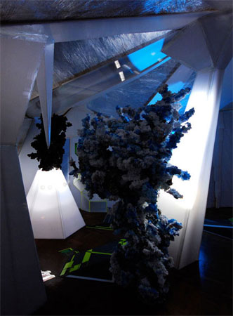 | STRAYLIGHT CAVERN An initial collaboration with The Cooper Gallery, Exhibitions Dept. Duncan of Jordanstone College of Art and Design, Dundee Jonathan Baldock � Michael Bell-Smith � Rick Buckley � Aisling Hedgecock � Ian Monroe � Takeshi Murata � Milika Muritu � Angelo Plessas � Richard Priestley � Rafa�l Rozendaal Private View Friday 30th January 2009 6.30-9pm 31st January-1st March 2009 Open friday-Sunday 12-6pm The title of the exhibition 'Straylight Cavern' is derived from cyberpunk author and sci-fi visionary William Gibson's Villa Straylight in his novel 'Neuromancer'. The Villa Straylight is a cyber-chateau of sorts, inhabited by cyber-diegheties where anything and everything is possible. Straylight Cavern offers the viewer a realm of possible other worlds and dimensions, inspired by memories of Villa Straylight and it�s inhabitants, but goes on to refer to other science fictional situations where mankind has colonised natural rock or ice formations in order to survive, such as the rebel bunker, �Echo Base�, on the ice planet, �Hoth�, in Steven Spielberg's 'The Empire Strikes Back', or the androids cave in Michael Anderson's film 'Logan's Run'. From the exterior, only a streamline, almost computer generated graphic interpretation of glacial or rock formation is visible. The interior of the cavern encounters the amalgamation and communion of various artists works and interventions. Straylight Cavern is a continuum of Richard Priestley�s curatorial approach to his art practice in which he provides the construct of the scenario in which the artists he has selected are to be shown. This approach invites the participating artists to succumb to the effects of the ambiance, politic and genre of the structure upon their work within the intensity of the installation and its interior. Blurring the boundaries of the artwork this approach questions authorship and the recontextualisation of individual works. The structures borrow from set design techniques and, in this instance, is handled by the imagination of Priestley�s �second life� avatar. Portrayed as his adolescent counterpart the overall exhibition becomes an autobiographical intervention. The genre and subject matter have been selected due to their potential as a vehicle for this collaborative work. A selection of artists invited to participate practice within the field of video and animation, which, in the context of the installation, offer portals into other worlds and dimensions being monitored from the caverns control centre. Milika Muritu will design the construct for the interior of the cavern where two and three-dimensional works are personified within the rock and ice structure of the caverns interior, and imply a sample collection and display process on the part of the fictional inhabitants of the cavern. The cavern will exhibit a selection of artists, Murata, Bell-Smith, Plessas and Rozendaal who are part of a new generation of artists who use the techniques, skills and aesthetics of the internet and its digital transformation. Takeshi Murata�s landscapes float and metamorphosise slipping in and out of perception. His colour saturated animations alternate and cascade into melting and condensing pixels. The screen constantly shifts from fixed form to fluid movement, in hallucinatory manipulations that are digitally organic drawing the viewer in and out of Murata�s psychedelic distortion. Takeshi Murata born in Japan lives and works in New York. Solo exhibitions include The Reliance Gallery, London 2007, Gallery.Sora, Tokyo, Japan 2007 Hirschhorn Museum and Sculpture Garden,Washington DC 2007. Group Exhibitions and Screenings include �Solar Set�, Foxy Productions 2007, �Take It to the Net�, Vilma Gold, London (2006); �Cosmic Wonder�, Yerba Buena Center for the Arts, San Francisco, CA 2006; �Deconstruction�, Gladstone Gallery, New York, NYC 2006 Michael Bell-Smith operates in the gaps between animation and painting, utilizing short digital loops to interrogate art-historical, cultural and technological forms. For the work in Straylight Cavern, Bell-Smith portrays the familiar landscapes of the city, figures reflecting an oblique social commentary, however, Bell-Smith�s main concerns are with the language of representation amplified by digital technology and restrained animation. His work lightly depicts a journey on the edge of abstraction and figuration, creating an impression of inter-galactic travel, skimming over the surface of the earth or soaring over electrified city-scapes Michael Bell Smith lives and works in New York City. Selected exhibitions in 2008 include Liverpool Biennial, The 5th Seoul International Media Biennale and The New Museum, New York, Musee d'Art Moderne de la Ville de Paris and MoMA, New York.and a solo at Foxy Productions NYC. Angelo Plessas and Rafa�l Rozendaal both work within the realms of interactive media. Their work exists live on the internet, but also has infinite applications to be displayed on screens and projected into the real world. Angelo Plessas creates simple interactive animated drawings that exist on the internet in their own right. His practice negates the pumped up hyperactivity of today�s computer animated games technology to offer a more fragmented abstract experience. Utilizing simple shape and subtle electronic sound to represent landscape and characters offers a more contemplative play. Inspired by Steven Lisberger�s sci-fi movie �Tron� Plessas exhibits an animated version of his interactive work, which also exists in cyber-space. Plessas lives and works in Athens. He has had solo exhibitions at �Sketch� 2005 ,Yama project, Istanbul, Turkey 2007 and has been included in Valencia Biennial 3, 2005 and �In Present Tense: Young Greek Artists�, National Museum of Contemporary Art, Athens. Earlier this year he was awarded a �Rhizome commission� for �New Museum�, NYC. Rafa�l Rozendaal refers to