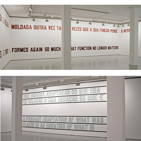 | LAWRENCE WEINER �POIGNANT ADAPTATION� Opening 18 March | 22h 19 March to 17 April �In the triangle formed by the author, the work and the public, the latter is not in any way a passive element which would only have a chain reaction, but rather a source of energy that contributes towards making the story itself. The life of the work in history cannot be considered without the participation of those to whom it is aimed�. Hans Robert Jauss The Reader Given the objectivity of Lawrence Weiner�s work, it becomes redundant to reflect upon anything beyond that which is presented to us. In a certain manner this artist has left us longing for to a �light at the end of the tunnel�, something that might help to settle his work within a fixed, easily understandable category. However, all of the efforts undertaken lead further and further from the truth, that his works possess. Lawrence Weiner is absolutely simple in his purposes and in his procedures. Trying to complexify his work takes it away from its aim as Art. In fact, the works he carries out, in a clear concern for materiality, are veritable sculptures in the sense of being objects ready to undergo the processes inherent to any artistic performing. And it is hoped that they will be seen in this way: as materials set out as open to free reception. And it is the reception of the work, rather than its production, that will concern us here. As the critic, as Jauss states, is necessarily a reader before being able to locate or understand the work, or to fundament his own judgement on awareness of its situation. Thus this text will not deal with the artist�s modus operandi (which in fact does not exist) or the formal analysis of the work of art, but instead revolves around an element that is almost always set to one side but the leading role of which is of great importance to us. We are speaking about the spectator, and as this is a matter of works using words, about the reader.2 In Weiner it is not a matter of using metaphors or phrases that intend to create ambiguities, multiple meanings or complex hermetic interpretations, but of demonstrating, through the permeability of language as a medium, how each work of art is the fruit of enormous freedom. Both for the person who produces it and the person who receives it. The work thus has access to existence through the act of interpreting, indifferent to the author�s intentions but focused on its receiver�s expectations and adaptations. The traditional aesthetics of production and representation is replaced by (or rather fused into) an aesthetics of reception and effects. This is the importance of translation in Weiner�s trajectory: making the texts he uses more understandable and accessible, but also recontextualising them in the right setting and in the concrete conditions of their reception. Just as any translation is betrayal, any adaptation is poignant. His work is formed within the perspective of a veritable dialectic: of the work with culture, of the author with the work, of the author with culture, of the work with its receiver, of the author with its receiver, of the receiver with culture, in a more open and infinite interaction of questions and answers. It is this dialogue that states the relationship of art in its broadest sense and life itself. The social dimension that reinforces the importance of the receiver�s experience is that which states the way that the work intervenes on the expectation horizon of our everyday lives, guiding or modifying our view of the world. This is perhaps a mission that is too demagogical for Art, but through this conclusion we can state that without doubt, like the text itself, the opening and virtual nature of his works, in their interactive and performing dimensions, cause some kind of transformation in the person who receives it. This is the wonder of any experience around a reading: when the text stops having a practical function, now opening up to its more reflective dimension, leaving its public perplexed, and showing that, in Art, the process of perception is an end in itself. 1Jauss, Hans Robert, Literaturgeschichte als Provokation (no translation into English available) 2The importance of this in the works of Weiner was always acknowledged by him from the beginning of his sort of manifesto (we prefer declaration of intent) dated 1968: 1. THE ARTIST MAY CONSTRUCT THE PIECE 2. THE PIECE MAY BE FABRICATED 3. THE PIECE NEED NOT TO BE BUILT EACH BEING EQUAL AND CONSISTENT WITH THE INTENT OF THE ARTIST THE DECISION AS TO CONDITION RESTS WITH THE RECEIVER UPON THE OCCASION OF RECEIVERSHIP | ||||