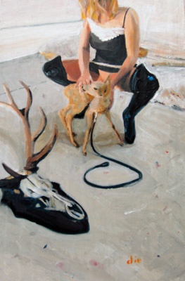 | J�RGEN WOLF "Die Verz�ckung oder f�r die Sch�nheit w�rde ich mich niemals verlieren, ausgenommen f�r ein gewisses Etwas, das Abenteuer verspricht." Er�ffnung: 30.05.2008, 19:00 Uhr Ausstellung: 01.06. - 05.07.2008 In seiner Malerei setzt sich J�rgen Wolf immer wieder mit der deutschen Romantik und dem Schein des Sch�nen auseinander. Vordergr�ndig zeigen sich Parallelen zu den Malern der Romantik in der gro�en Vielfalt der k�nstslerischen Ausdrucksm�glichkeit. Denn in der Formsprache dieser Maler war, ebenso wie in der modernen Kunst, die Reinheit der Linie von gro�er Bedeutung und die Farbe wurde zum Tr�ger symbolischer Gestaltung. Diese Polarit�t ist auch den Bildern von J�rgen Wolf eigen. Er verwendet mit einem nahezu provokanten Unterton, erotische, allt�gliche, absurde oder banale Motive. Oft will er das Interesse des Betrachters durch den bewu�ten Gebrauch von �unsch�nem� Material und Inhalten wecken und unterstreicht gleichzeitig, da� der Begriff des Sch�nen immer einen subjektiven Charakter hat. Man verbindet mit dem Sch�nen die Fiktion von Vollkommenheit und mu� sich dabei des Wagnisses bewu�t sein, wie unm�glich es ist, die Vorstellung des Sch�nen auf einen deutlichen Begriff zu bringen. Die Verbindung von J�rgen Wolf zu den Malern der Romantik w�chst folglich aus der intensiven Entfaltung der Subjektivit�t, die zu einem kritischen, emotionalen Erleben seiner Umwelt f�hrt. Sie �u�ert sich in der Ambivalenz von einer Verpflichtung zum Widerstand und der Liebe zur Tradition. Die Bilder sind also Folien f�r die Auseinandersetzung eines dem romantischen Geist verbundenen K�nstlers mit einer Erlebniswelt, die sowohl lustbetonte als auch schmerzhafte Erfahrungen hervorbringt. Die Frage nach dem Bed�rfnis von Sch�nheit soll und kann keine verbindliche Antwort erhalten, die Intension des K�nstlers ist vielmehr diese kontr�ren Positionen in seinen Bildern auszuloten. | ||||