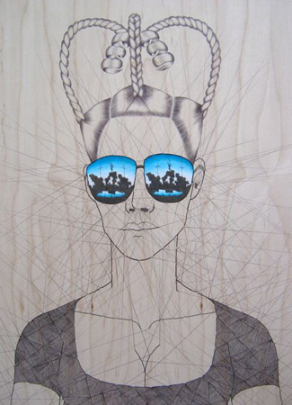 George Bolster, The Madonna of California, 2009 Pencil, pen and watercolor on maple wood 18 x 24 in | |||