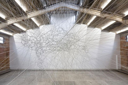 Antony Gormley - Another Singularity 2009, 8 mm diameter polypropylene cord, 6 mm and 8 mm diameter polypropylene/rubber bungee cord, steel fixings, variable dimensions | |||