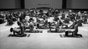 | SANTIAGO SIERRA Los penetrados Galer�a Helga de Alvear 15 de enero de 2009� 28 de febero de 2009 Horario: 11:00 a 14:00 y 16:30 a 20:30 h. Inauguraci�n: jueves 15 de enero de 2009, 20.00 h. El nuevo trabajo de Santiago Sierra se relaciona directamente con la l�nea desarrollada en obras como �111 construcciones hechas con 10 m�dulos y 10 trabajadores, Zurich, 2004� o bien �Ordenaci�n de 12 parapetos prefabricados, Israel 2004�. En ellas una serie de formas geom�tricas son combinadas por el artista de distintas maneras. Estas obras enlazan con en minimalismo a trav�s de una herencia tanto est�tica como conceptual. Los cuerpos geom�tricos utilizados se refieren a una cita formal directa mientras que (y por encima de todo) permanece una intenci�n conceptual heredada de ese movimiento en la que esos mismos objetos no son �nica y exclusivamente lo que son. �Los penetrados� parte de una propuesta muy parecida: de la combinaci�n de 110 elementos de dos colores y de dos g�neros, tomados en parejas. En este caso, sin embargo, en lugar de ser cuerpos geom�tricos s�lidos son cuerpos humanos. Esto es: hombres negros, hombres blancos, mujeres negras y mujeres blancas combinados entre si de dos en dos teniendo en cuenta si penetran o son penetrados. Las caras han sido borradas digitalmente para acentuar el car�cter puramente modular de los int�rpretes. La acci�n se divide en ocho Actos; tantos como combinaciones se establecen entre los cuerpos activos y pasivos de negros y blancos: blanco-blanca, blanco-blanco, blanco-negra, blanco-negro, negro-negra, negro-negro, negro-blanca, negro-blanco. El punto de partida te�rico son grupos de 10 parejas sobre las que hay que aplicar la disponibilidad de la realidad actual en Espa�a. La geometr�a estructural te�rica de la acci�n queda reflejada en una trama formada por las 10 mantas sobre las que se van a colocar las sucesivas parejas. Frente a esto, la realidad de la propuesta se manifiesta cuando alguna de las mantas queda vac�a en aquellos Actos en los que las circunstancias no han podido proporcionar los elementos/int�rpretes necesarios para llevarla a cabo. De esta forma en el Acto 3 s�lo hay 3 parejas, ya que la presi�n policial hizo que la mayor�a de las mujeres convocadas no se presentaran. Los condicionantes sociales y culturales, por su parte, dificultaron el encontrar varones pasivos de raza negra. Las mantas grises construyen por lo tanto la trama perfecta sobre la que, con posterioridad, se aplicar�n los condicionantes de la realidad. Los vac�os son una representaci�n visual de la composici�n de la sociedad espa�ola actual. La propuesta de Sierra en n�meros exactos y perfectos tiene que ajustar cuentas con la realidad como en anteriores ocasiones. De espaldas a los ejecutantes un espejo en �ngulo multiplica las parejas y los puntos de vista. El espejo como lugar de representaci�n pero tambi�n como recurso para hacer extensivo al espectador lo que est� ocurriendo en la pantalla: en el espejo uno se puede ver reflejado al tiempo que, al duplicar a los ejecutantes, parece abarcar a la sociedad al completo. El elemento final de la acci�n es la penetraci�n. Si habitualmente se identifica penetraci�n con posesi�n (incluso en el diccionario y en el lenguaje literario llegan a ser sin�nimos) la penetraci�n anal tiene siempre una connotaci�n negativa. Incluso en los momentos �lgidos de la revoluci�n sexual la reivindicaci�n del sexo anal ha sido la m�s dif�cil y en casi todas las lenguas existe una expresi�n que identifica la penetraci�n anal con el desprecio hacia el que es penetrado. Este trabajo se llama �Los penetrados�, as� que es en ellos, en su pasividad y sumisi�n, en quienes recae el protagonismo. Hay otra serie de trabajos de Sierra en los que pone en evidencia el funcionamiento de la sociedad capitalista y de mercado al remunerar a los participantes de sus acciones. En algunas de ellas se mezclan elementos como la remuneraci�n y la variaci�n de cuerpos geom�tricos (�Elevaci�n de seis bancas, Munich, 2001�) o la remuneraci�n y el sexo (�Diez personas remuneradas para masturbarse, La Habana, 2000�). �Los penetrados� no es una de ellos. Aunque los actores hayan sido remunerados por su participaci�n en la obra, esta no s�lo se refiere a las relaciones establecidas entre el sexo y el intercambio econ�mico, sino que utiliza el sexo como met�fora de las relaciones sociales que se establecen entre individuos de ambos sexos de raza blanca y negra. Esta obra fue realizada el 12 de Octubre, otrora D�a de la Raza y Fiesta Nacional de Espa�a. SANTIAGO SIERRA Los penetrados Galer�a Helga de Alvear 15th January 2009 � 28th February 2009 Hours: 11:00 am - 2:00 pm & 4:30 - 8:30 pm Opening: Thursday 15th January 2009 at 8:00 pm This new work by Santiago Sierra is directly related with other previous works, for instance �111 Constructions with 10 Modules and 10 Workers� (Zurich, 2004) or �Arrangement of 12 Prefabricated Fortifications� (Herzliya Museum, Israel 2004) in which a series of geometrical forms were combined by the artist in different arrangements. From an aesthetic and conceptual viewpoint they also dovetail with minimalism. The geometrical bodies echo back to a direct formal citation that (above all else) remains intact as a conceptual intention inherited from this movement in which objects are not only or exclusively what they are. �Los penetrados� [The Penetrated] is grounded in very similar way: the combination in couples of 110 elements with two colours and two genders. In this case, however, instead of solid geometrical bodies, they are human bodies. In other words: black men, white men, black women and white women combined in pairs on the basis of whether they penetrate or are penetrated. The persons� faces have been digitally erased to accentuate the purely modular charac