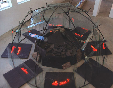 | Mario Merz 530 West 21st Street Opening September 18, 2008 Gladstone Gallery is pleased to announce an exhibition of historic work by Mario Merz. A major figure in the Arte Povera movement of the 1960s and 70s, Merz�s use of both organic and industrial materials was at the forefront of the movement�s artistic identity. Roughly translated as �poor art,� Merz along with counterparts such as Alighiero e Boetti and Luciano Fabro wanted to separate the art object from consumer capital, emphasizing conceptual process and everyday forms as the most transcendent methods of universal communication. Best known for his igloos and neon Fibonacci sequences, Mario Merz�s shamanistic installations become spaces both primal and technological, where the scientific basis of organic life confronts the roaming imagination of man. The igloo began appearing in Merz�s work in 1967 and continued throughout his life. He saw the mobility of this typical shelter for nomadic wandering as an ideal metaphor for the space of the artist. Delineating interior and exterior, the igloo allows the artist domain anywhere, and for any time, along the spectrum of human existence. In this exhibition, the gallery will show two igloos that incorporate Merz�s signature use of metal, neon lights, and animal forms. Often bringing together disparate ideas or forms, the igloos straddle dichotomies: as Merz said: �I work with contradiction � neon and canvas, glass and wax, electrical technology and mud. Everything is a contradiction because without that there is no life.� In addition to the igloo, Merz was fascinated by the Fibonacci sequence, the mathematical pattern (named for the Italian monk who discovered it) that reveals the growth rate of many organic materials (the nautilus shell, leaves, pinecones, antlers, etc.). The pattern is identifiable as a sequence of numbers in which any given number is the sum of the two numbers that precede it: 1, 1, 2, 3, 5, 8, etc., ad infinitum. Fashioned in neon and draped along walls, often punctuating the hemispheres of his igloos or marking the facades of buildings, Merz�s use of the Fibonacci sequence speaks to the artist�s strong belief in the potentiality of growth and the ability to transform through eternity. His belief in the omnipresent domain of the human experience, its continuing power to grow, and his transformation of waste into the conduits of his concepts speaks directly to his empathic embrace of life. Mario Merz was born in 1925 and died in 2003. He was awarded the Ambrogino Gold Prize, Milan; the Oskar Kokoschka Prize, Vienna; and the Arnold Bode Prize, Kassel. He was the subject of numerous solo exhibitions at institutions around the world, including Funda��o de Serralves, Porto; Welhelm Lehmbruck Museum, Duisberg; Fundaci�n Antoni T�pies, Barcelona; Solomon R. Guggenheim Museum, New York. His work is currently on view as part of �Life on Mars: 55th Carnegie International� in Pittsburgh, PA. The Fondazione Merz in Turin, Itlay, regularly displays both the works of its namesake and sponsors exhibitions by living artists. | ||||
