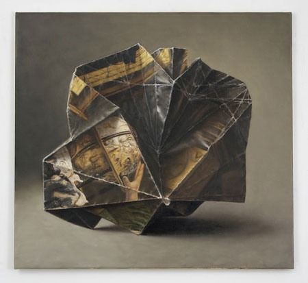 | Filippo Caramazza The Flutes of Impossible Shepherds PV: Thursday 14 January, 6-8pm 15 January - 13 February 2010 Hales Gallery is pleased to present Filippo Caramazza's first solo show at the gallery. The title of the exhibition, The Flutes of Impossible Shepherds, refers to a quote from The Book of Disquiet by Fernando Pessoa, the Portuguese poet and writer, who utilized the literary device of Heteronymy; the creation of one or more imaginary characters created by a writer to work in distinctly different styles. Caramazza calls upon the deep reserve of painting itself, not as relics of the past, or shards, but rather as reminders of the endlessness of signification embedded in these works. Masterpieces from the past are disassembled and reassembled, occasionally stripped bare to just one element. Many become beautifully painted still life of props or origami made from the pages of past auction catalogues. Others are trompe l'oeil of studio walls with taped postcards or blu tack and some become folded canvas, lumpy and obtuse. We are presented with simulations of the almost endless catalogue of a museum of the mind, a veritable gallery of the image. The adventure of the image is both cast as entanglement but also as the potentiality of release, it is on this edge that the work steers its course. Each series appear to announce their unique posture in regard to painting and appropriation. It is not always clear what is at stake in this; is it a case of humour, cultural exhaustion, irony, or even a procession of despair? Filippo Caramazza graduated from the Royal College of Art in 2008. | ||||