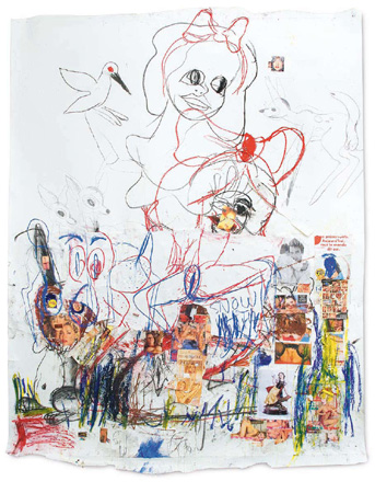 Paul McCarthy, White Snow, Ginger Then, 2009 Charcoal, oil stick, collage on paper 261.6 x 203.2 cm / 103 x 80 inc | |||