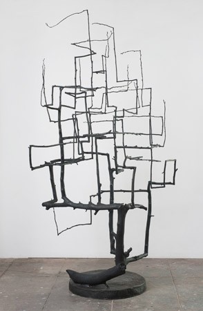 In Trees, Heads, Molds, Evan Holloway shows three series of works. The artist has been working on his tree sculptures for over ten years. The earliest trees were wooden structures made from real branches. The artist assembled the branches into geometrical forms and painted the structures in bright colours, as if to transform natural organic elements into artificial artefacts. He has recently returned to this theme and will present his trees in bronze for the first time. Each of the trees shown at the gallery has a specific colour system applied to it, except for one large monochrome tree with a dark patina.