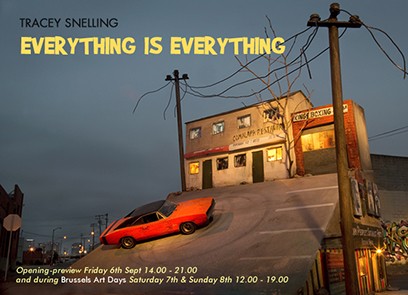 | Tracey SNELLING : Everything is Everything 06.09 – 19.10.13 Tracey Snelling’s immersive, environmental exhibition Everything is Everything presents a significant body of new multi-media installations and sculptures, including works produced during her recent residencies in Beijing and Zhujiajiao, China. In her video animated small scale buildings and locales, as well as life size installations and neon signs, Snelling’s cultural references create compelling dichotomies, schisms, counterpoints and convergences. One such complex configuration can be seen in Oakland Sideshow (2013), in which a graffiti covered replica of a building that serves as an Upperkutz barbershop, Latin restaurant, and boxing gym, is perched atop the African People’s Socialist Party Office and a small hill where a model of a hotrod spins in place – a nod to the sideshow drag racing popular in Oakland, California. While Snelling does not attempt to recreate exact images from places she has visited, as one wanders through her installations they do begin to tell a story about her own journeys through big cities, small towns, abandoned buildings and the like. Though the origin of the places to which each work is tied is clearly understood, the viewer, nonetheless, does not only experience these installations, which incorporate miniature sculptures, projections and found objects, as being directly related to the countries that they represent. Instead, these works, when taken into consideration alongside one another, begin to form an abstracted kind of conflated version of the ways that experiences get mixed together and eventually form connections, sometimes so strongly that differentiations between one place and another that may be thousands of miles away geographically, become blurred and questioned. With this exhibition, we see the kind of pastiche of cities, cultural iconography and the recurring significance of the souvenir or trinket that Snelling brings to our attention, which also resonates with many other aspects of contemporary life. While at once visualizing a kind of traveler’s diary or photo album, Everything is Everything also speaks to the looming sense of our shrinking world. Not only are we more easily able to see places that people in the past could only dream of going to, but even when we cannot physically set foot somewhere, we are still afforded access to myriad aspects of its culture, politics, arts and history. In Everything is Everything, Snelling allows viewers to actuate this consistent meandering way of life in real time and space, pausing in one corner to notice the simple beauty of a whitewashed Greek souvenir sculpture, while glaring neon signs that scream southern Americana glow just above. Another mixed-media work, Communist Apartment 1 (2013), made in collaboration with artist Idan Levin, takes the form of a miniature apartment complex whose windows project video clips from Chinese and Russian films. Here images of rundown dated rooms glare out from the sculpture, bringing the piece to life with the faces of its disparate residents. Such fusions that Snelling procures only further complicate ways in which people from all over the world can often relate to one another on the simplest and most humanistic levels. Ultimately Everything is Everything, as its title implies, offers insight into ways in which fragments, as they accumulate, begin to form natural links to one another. This interconnectivity as it is strengthened over time, melds incongruous images, ideas and places into a unified vision, which, though it may take on various manifestations, still renders the same indelible message. Courtney Malick Los Angeles, August 2013 This is Tracey Snelling’s first personal exhibition at Aeroplastics contemporary. She has previously exhibited solo in Brussels at Taché-Levy gallery (2007 and 2009) and has already featured in two of Aeroplastics’ projects : group exhibitions “Fireflies” (Aeroplastics , Feb 2012) and “That’s all Folks!” (Belfry Stadshallen, Bruges, Dec 2009 - Jan 2010). Snelling’s sculpture-models are included widely renowned collections such as Margulies Collection (Miami), David Roberts (London), Antonio Dalle Nogare (Italy), Gemeentemuseum Helmond (The Netherlands), Himalayas Museum (Shanghai), Museum of Fine Arts Houston (Texas), Selfridges (London), West Collection (Pennsylvania), 21c Museum (Kentucky), Angel Collection of Contemporary Art (Israel), and Microsoft Art Collection (Redmond, Washington). | ||||