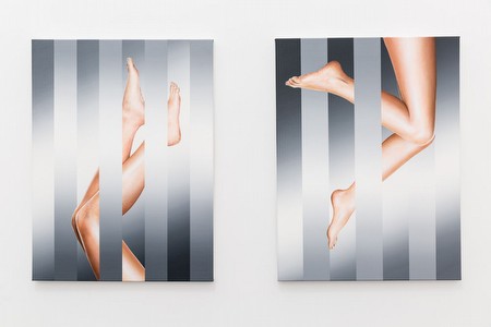 | Martin Basher A Guide to Benefits June 13 - July 25, 2015 Opening reception Saturday June 13, 6-8PM Keep track of this jumble, it’s important to know how it all works out. Rich people look like candy, but their facials aren’t cheap. Today’s headache predicates another night of heavy drinking. Tylenol® should help with that. A trip to the mall is a trip to the liquor store; a throwaway experience. Marbled interiors and glossy surfaces are the best places to find silk socks or finely aged whiskey. It’s the finest on display until it’s usurped in the fall; hangovers always remain in season. Confidence is a convertible sprayed by a sprinkler with red lipstick smeared on the rich leather seats. Ruined bed sheets and carpet stains only add to this unfolding Jack Pollock of salty virility. White always can use a good dose of pigment, anyway, and the credit card will always cover the mess. Between the Ativan in the medicine cabinet and the oxfords in the closet, an unfolding narrative emerges. A triumph of disposable income is hanging on the living room wall. Those rich, deep hues are a damn good thing to look at while getting in her pants. There is no need to explain when the television is on and Marcello has the whip, Asa nisi masa. It’s classic, all in black and white with a touch of grey. Before you: voyages between meeting rooms, cocktail lounges and blackout moments between two legs. It’s the best a man can get. Anat Ebgi is pleased to present A Guide to Benefits, the first Los Angeles solo show of New York-based artist Martin Basher. Expanding upon the lineage of display-based artistic practices, Basher’s work taps consumer psychology, sublimated desire and masculine gaze. The title of the exhibition refers to credit card protections, customer loyalty programs and the masochistic intimacy of encounters between associates, clients, friends and partners. For his solo exhibition, Basher will present a series of paintings and collages featuring his signature motif of flawless oil-painted gradated stripes, along with a site specific sculpture made from plexiglass, aluminum, chrome and everyday consumer goods. Marking a new development in the work, A Guide to Benefits brings photo-real renderings of legs and liquor glasses into the paintings and collages, making an explicit link between the paintings and the retail forms that constitute his sculpture. The objects and images resonate with the emotional undercurrents of consumerism. The consumer’s appetite is insatiable; customer loyalty is only as good as its dopamine kick. In this context, Basher’s work wryly locates the sublime on the shop floor and gallery wall in equal measure. Martin Basher was born in 1979 in Wellington, New Zealand and lives and works in New York. The artist received his MFA at Columbia University. He has shown internationally at public institutions including University of Connecticut, Art In General, Auckland Art Gallery, and The Public Art Fund. Recent solo exhibitions include Starkwhite, Auckland and Saatchi & Saatchi, New York. Basher has been included in group shows at 179 Canal, Tracy Williams, New York and Brand New Gallery, Milan. Basher has an upcoming solo exhibition this fall with Brand New Gallery, Milan. For more information, contact Stefano di Paola: [email protected] or call (310) 838- 2770. Gallery hours are Tuesday-Saturday, 11am-6pm | ||||