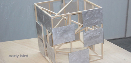 We are pleased to announce the second single exhibition of Klaus Schmitt (born in 1955, living in M�nchengladbach) in our gallery rooms. The exhibition is entitled �early bird�. On the one hand this title refers to a little model of a temporary large sculpture, which Klaus Schmitt will create in a park in the early autumn of this year. On the other hand the title contains a reference to the artistic reactions in the time after modernity and minimal art, which at the present time again are up-to-date.