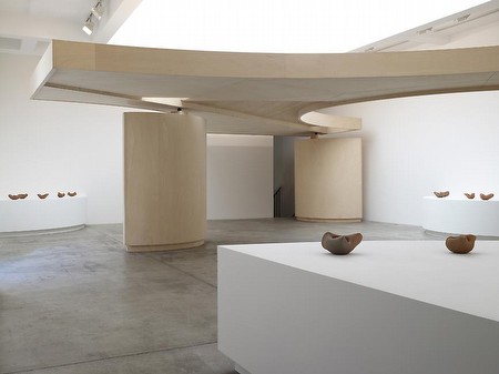 | GABRIEL OROZCO September 8 - October 20, 2012 Opening September 7, 6-9 pm The Galerie Marian Goodman is pleased to announce a new exhibition of works by Gabriel Orozco conjointly with Galerie Chantal Crousel. On the ground floor of 79 rue du Temple, Gabriel Orozco will present for the first time in Paris a sculpture he originally made for the 51st Venice Biennial in 2003 called “Shade Between Rings of Air”. In Venice it was placed next to the patio of the Italian Pavilion where stood the original concrete structure, named “La Pensilina”. La Pensilina, constructed by Carlo Scarpa in 1952, was conceived as a pergola within the inner patio of the Italian Pavilion, designed to house sculptures, plants and a fountain. In 2003 Orozco made this 1 to 1 replica in wood as a full scale model to be shown in an adjacent and quiet interior space of the Pavilion as a contrast to the original outside, already deteriorated by time and weather. After the original exhibition in Venice, Orozco’s Shade Between Rings of Air started to travel on its own and has been exhibited in various places, generating a geographical distance but nevertheless drawing parallels in time to the static pergola of 1952. As a platonic replica, this model structure became an independent mobile architectural object to be inserted into different contexts. As in some of Gabriel Orozco’s former works (La DS (1993), Elevator (1993), Observatory House (2006)), this sculptural process plays with specificity and cultural memory, as well as with the intersection between the individual and historical matter. Exhibited before at the Palacio de Cristal in Madrid and at the Fine Arts Palace in Mexico City, Shade Between Rings of Air comes to France along with new terracotta sculptures. The selection of terracottas made recently is part of the series “Orthocenters”. They are formed on a table by the impressions and rotations of the hand on a mass of clay. By constantly rotating on its own center, the clay forms a geometric shape (frequently triangular). After the initial shape is formed, the whole weight of the clay is laid to rest on a solid sphere. The shaped clay is then turned over and the sphere removed. The void left by the sphere recalls an empty pot. In the downstairs gallery, we are presenting “Solvitur Boomerando”, a video of the artist throwing a boomerang, one of his favorite activities over the last few years. Orozco considers this occupation as an extension of his artistic practice. The act of throwing and catching boomerangs brings the thrower an increased awareness of nature and chance, as well as the continual surprise that something thrown away in the wind can come back to you. The house in the video, known as the Observatory, was designed by the artist as an approximate replica of an architectural instrument from the 18th century Jantar Mantar site in New Delhi (India). The artist made this house located on the Pacific coast in Mexico, directly connected to nature and the landscape, as a platform of exploration with a 360° panoramic view. The show also includes two grids of 99 photographs which document sculptural actions in two different architectural contexts: The Observatory House as well as the ruins of the school of Visual Arts in La Habana (Cuba). Gabriel Orozco was born in the region of Veracruz in Mexico in 1962. International artist, Orozco lives between Mexico, the United States and France. His work has been exhibited in the most prestigious museums around the world. In 2010 and 2011, the MoMA in New York, Tate Modern in London and Centre Pompidou in Paris organized a retrospective of his work. Currently the Deutsche Guggenheim in Berlin is showing some of his new works (Asterims until 21.10.2012). | ||||