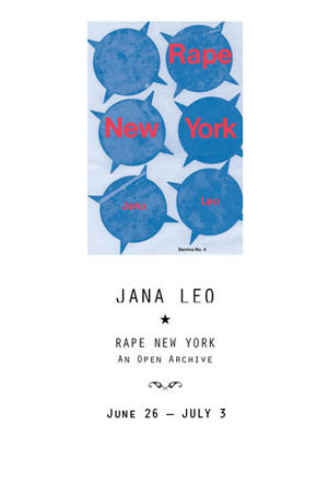 INVISIBLE-EXPORTS is pleased to announce RAPE NEW YORK - An Open Archive, presented by Jana Leo.
