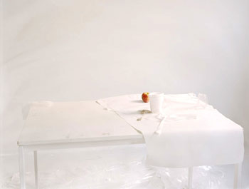 The Yancey Richardson Gallery is pleased to present To Say It Isn�t So, an exhibition of new large-scale photographs by Chicago-based artist Laura Letinsky. Letinsky�s new work pictures the detritus of contemporary culture in meticulously composed and exquisitely lit still lifes. Utilizing discarded styrofoam cups, paper napkins, plastic cutlery, paper plates, crushed cans and paper bags, Letinsky conflates the timeless beauty of the classical still life with the chaotic banality of contemporary consumer culture.
