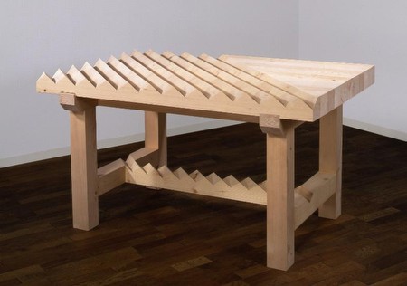 Robert Morris played a pivotal role in defining Minimalist sculpture, Process Art, and Earthworks. After concentrating his attention on rigid materials and angular forms in the mid-1960s, Morris began to use soft materials, most notably felt, which he piled, stacked, and hung from the wall in an investigation of the effects of gravity and tension on ordinary materials. Morris also explored other industrial raw materials such as dirt and thread waste, yet due to their scattered placement these works often appear light despite their heavy weight. One of the artist's principal concerns during these years was the notion of indeterminacy – for example, Scatter Piece (1969) simply consists of two hundred pieces of steel, lead, zinc, copper, aluminum, brass, and felt, which can be exhibited in any number of configurations.